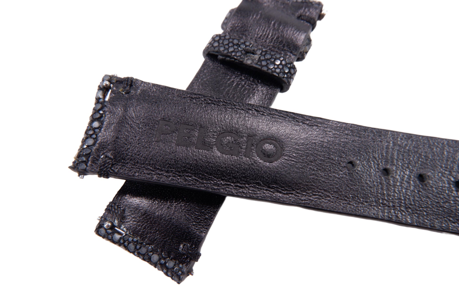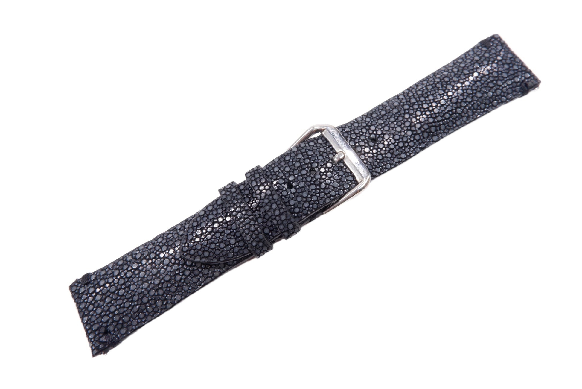 Genuine Polished Stingray Skin Leather Quick Release Watch Strap Black Band with Buckle