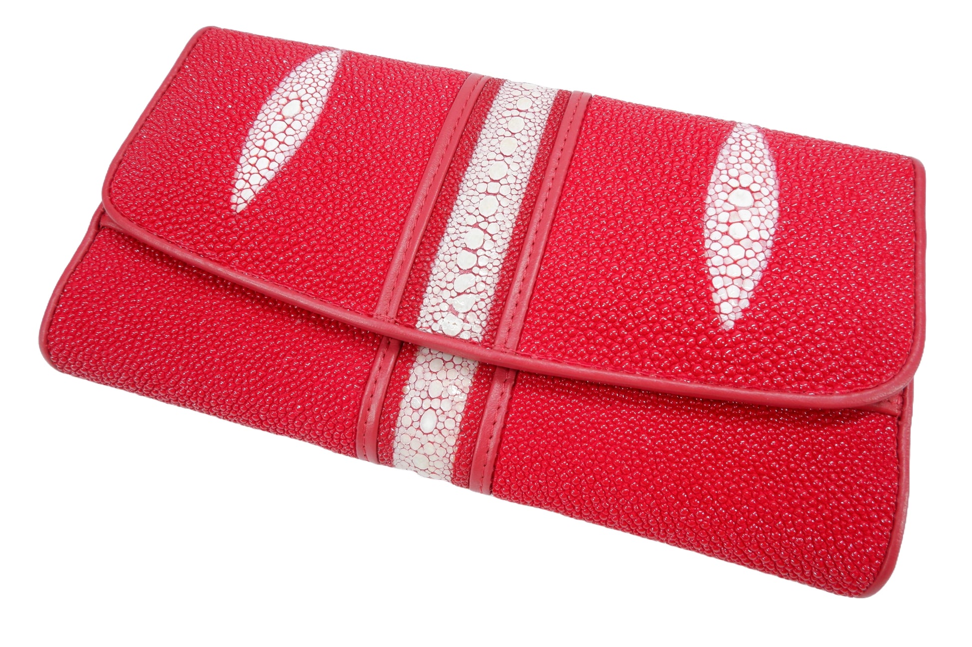 Genuine Row Stingray Skin Leather Women's Trifold Clutch Wallet Purse