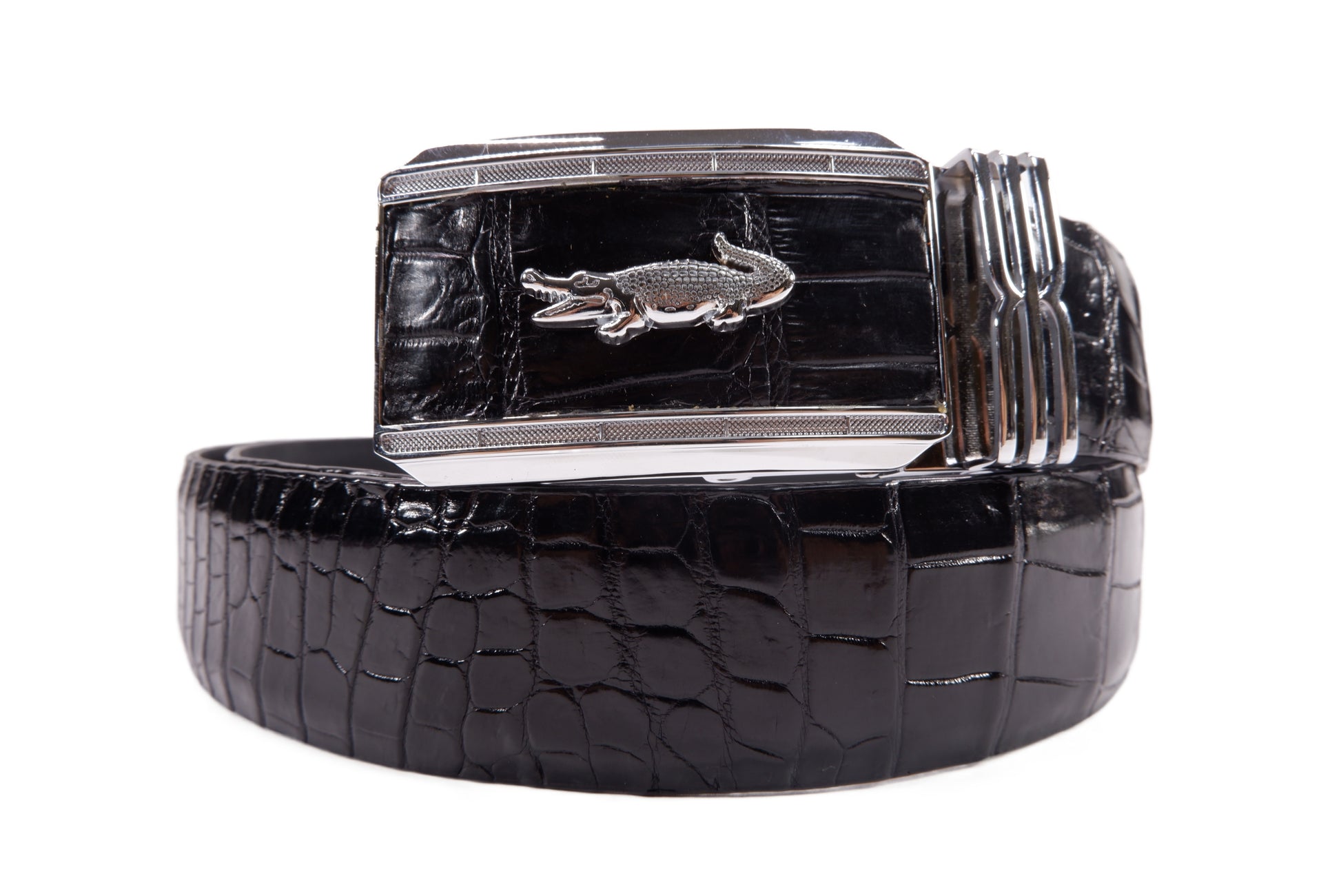 Genuine Crocodile Belly Skin Leather Auto Locking Luxury Men's Belt