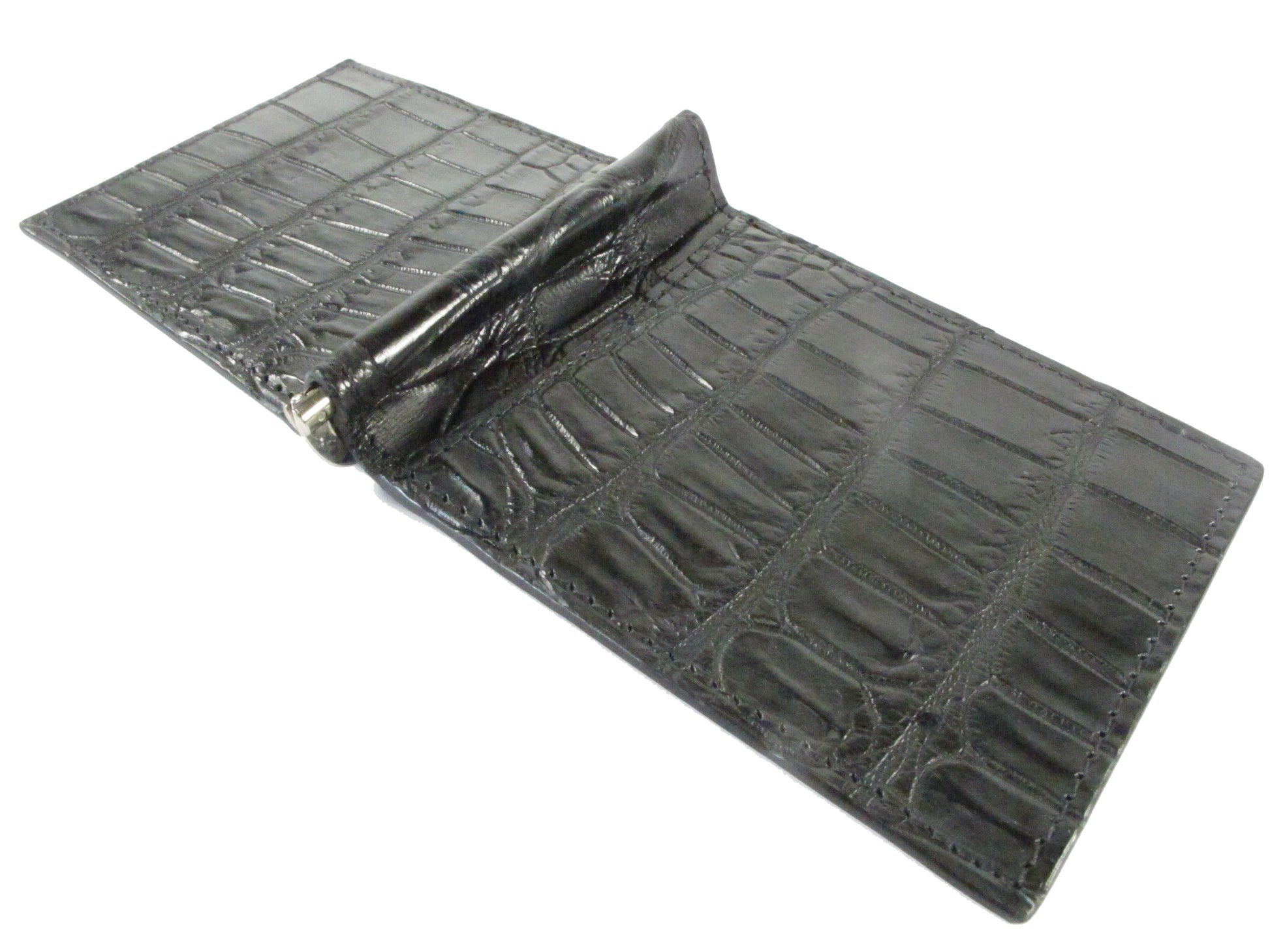 Genuine Crocodile Belly Skin Leather Money Clip Slim Bifold Men's Wallet