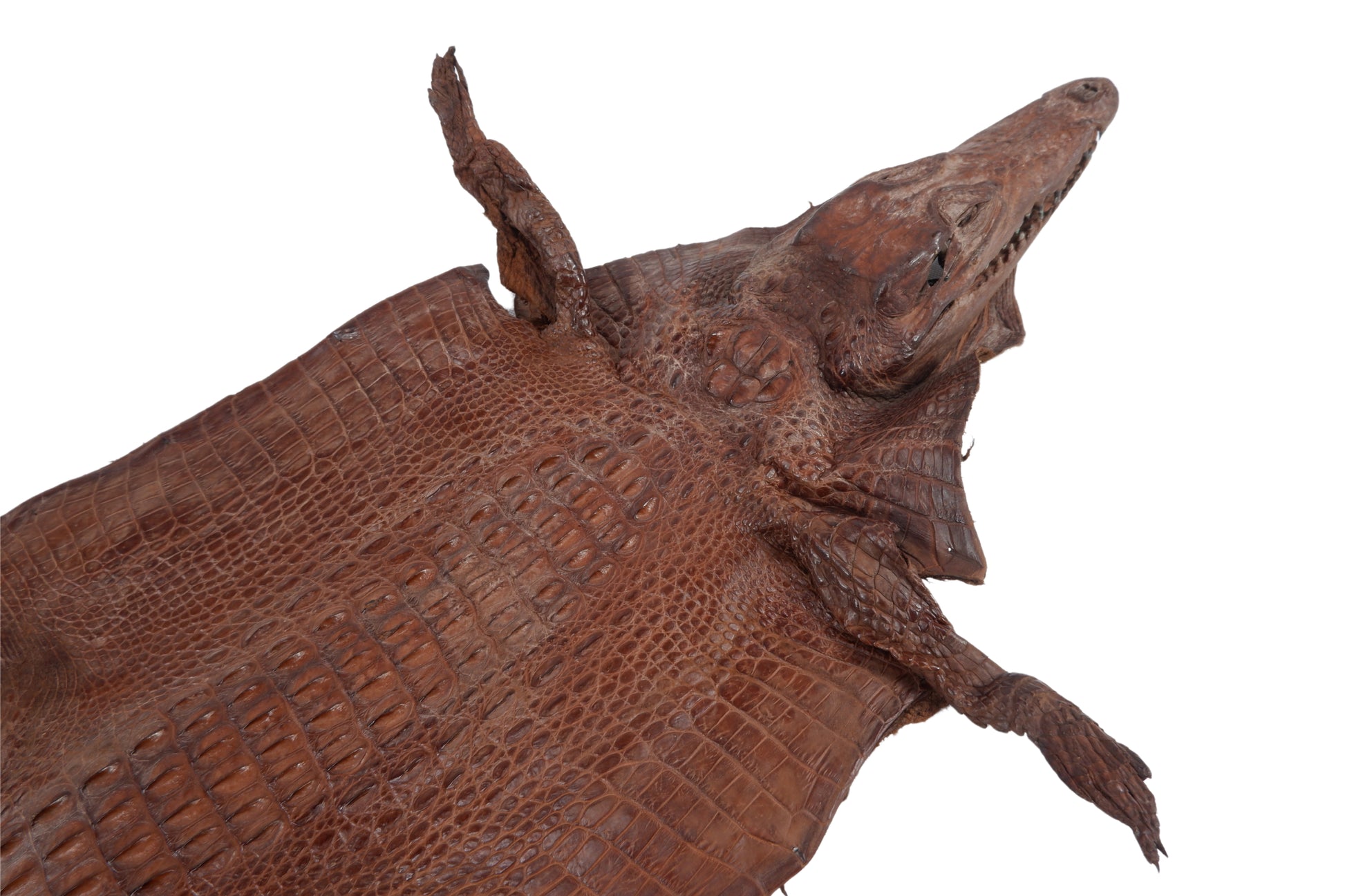 Genuine Crocodile Hornback Skin with Head Leather Hide Pelt Brown