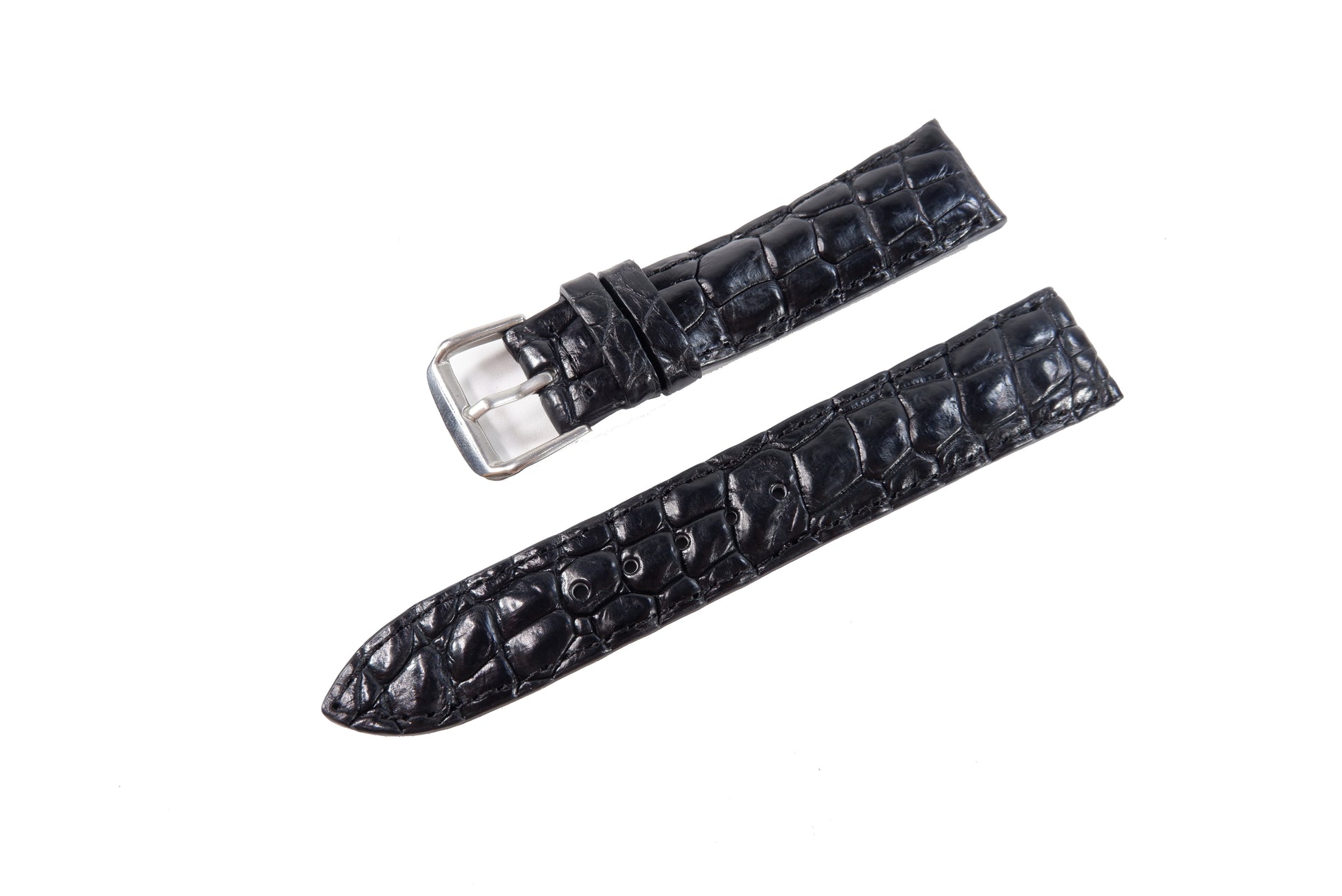 Genuine Crocodile Skin Leather Watch Strap Band with Buckle Black